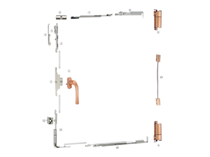 配件執(zhí)手、合頁可通過調(diào)節(jié)適用于左、右式門窗。